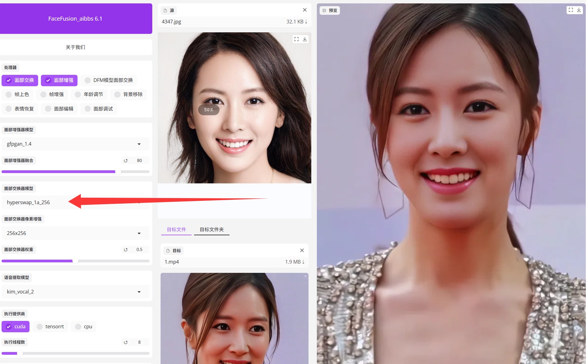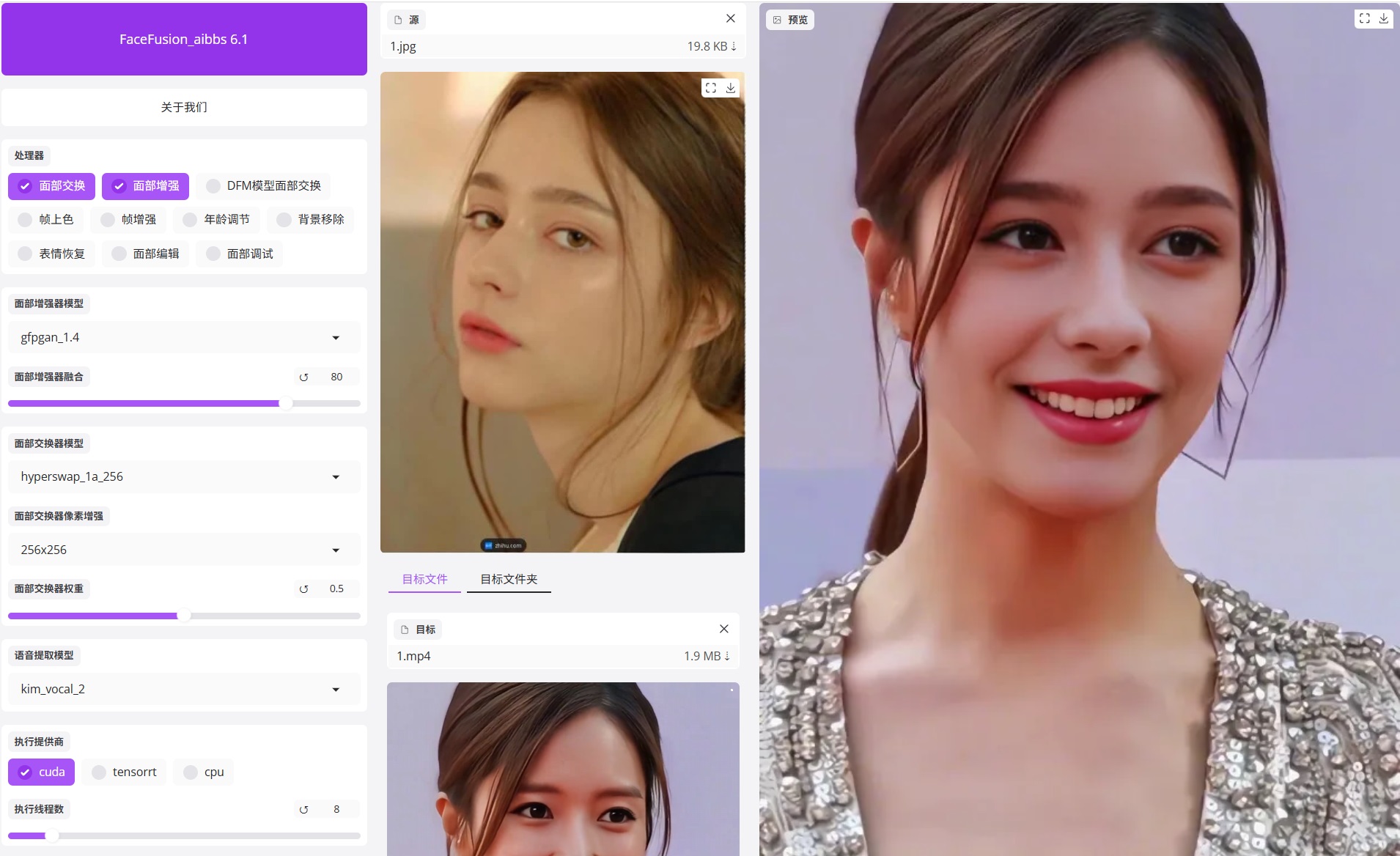 FaceFusion视频批量换脸工具最新6.1稳定版本换脸工具整合包, , 支持目标文件夹批量处理, 无需配置任何环境,解压即用,本地版本,无需联网也可使用,一次下载,永久免费使用